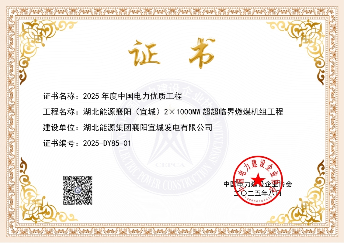 襄陽宜城發(fā)電公司獲評2025年度中國電力優(yōu)質(zhì)工程獎